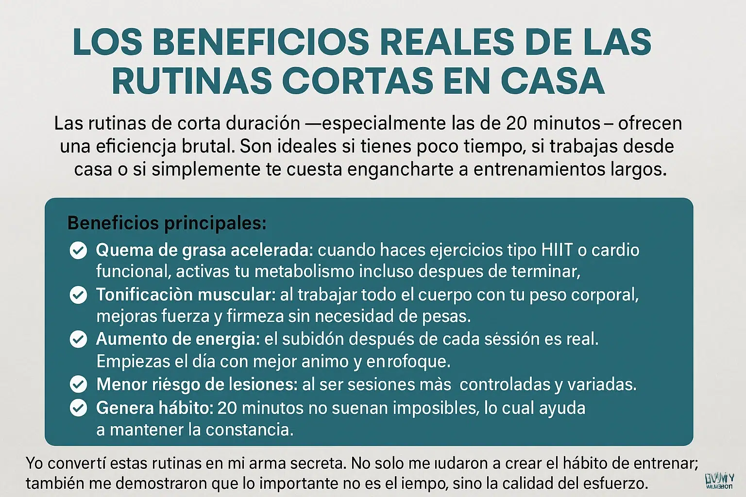 Yo convertí estas rutinas en mi arma secreta. No solo me ayudaron a crear el hábito de entrenar; también me demostraron que lo importante no es el tiempo, sino la calidad del esfuerzo.
