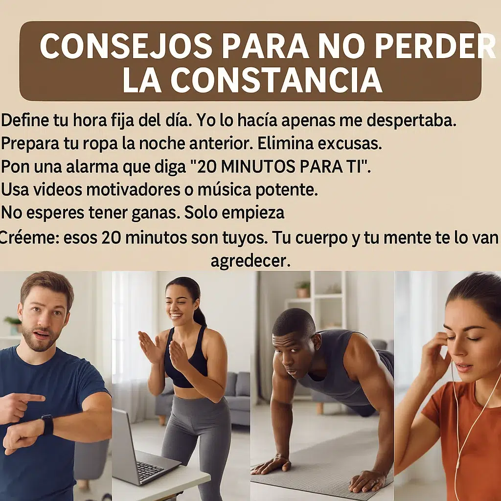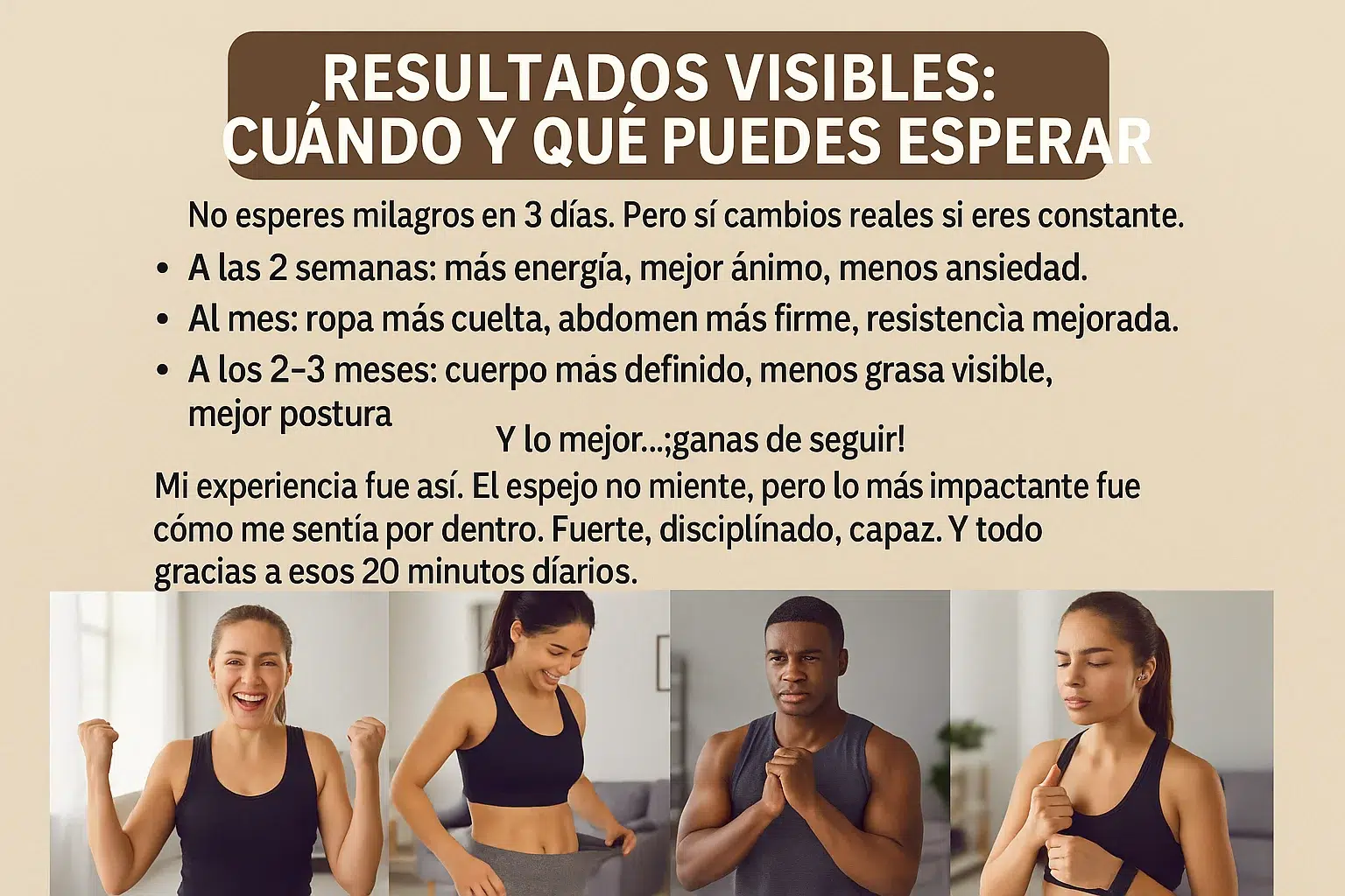 Así que sí: 20 minutos pueden bastar. Cuando se hacen con intención, constancia y buena estructura, son más que suficientes para quemar grasa, tonificar y ganar salud.