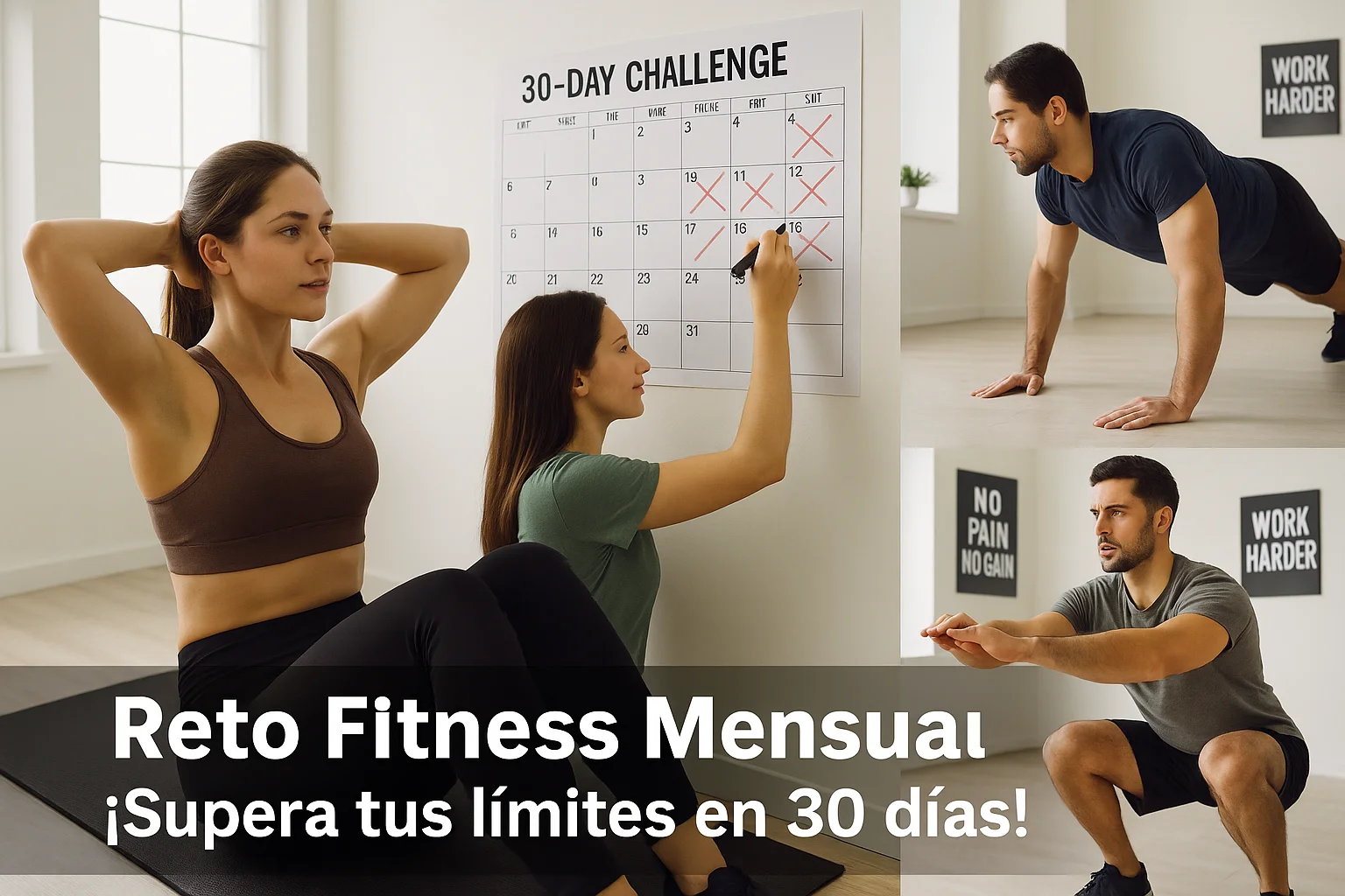 Los retos mensuales permiten ver el progreso de forma tangible. Imagina poder marcar cada día que completas en un calendario, y ver cómo, poco a poco, tu esfuerzo se convierte en resultados. Esta metodología convierte el objetivo global (cambiar tu cuerpo) en pequeñas victorias diarias. Y créeme, nada engancha más que esa sensación de logro al final de cada jornada.