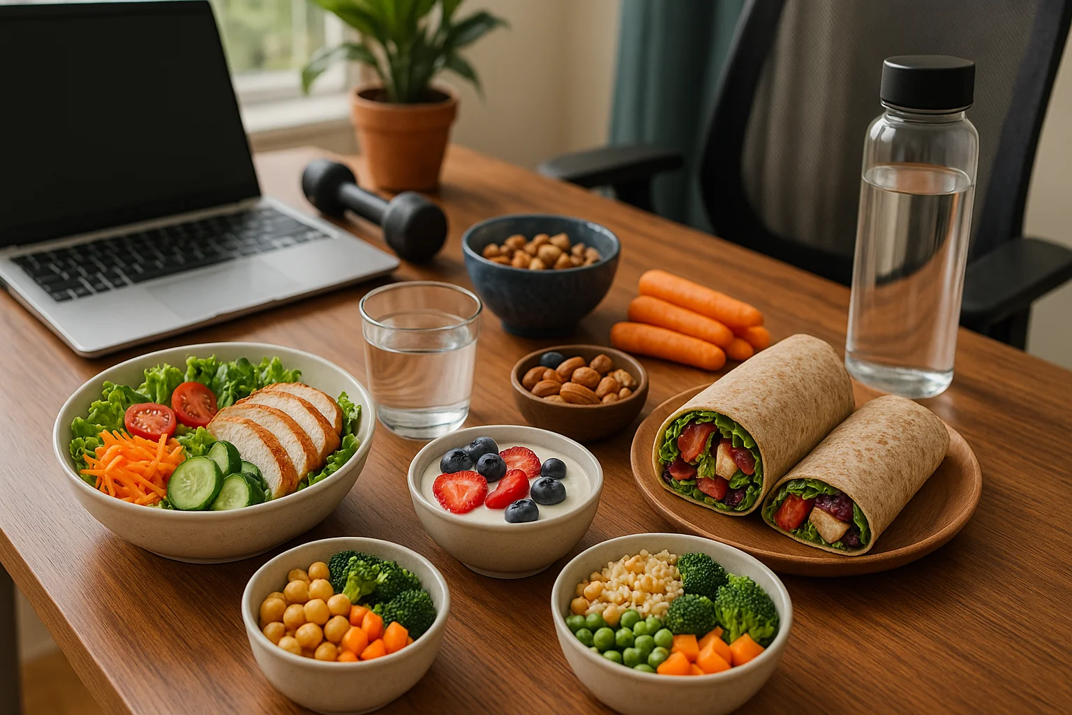 Planificar snacks saludables desde la mañana: frutos secos, yogur griego con frutas, bastones de zanahoria con hummus.